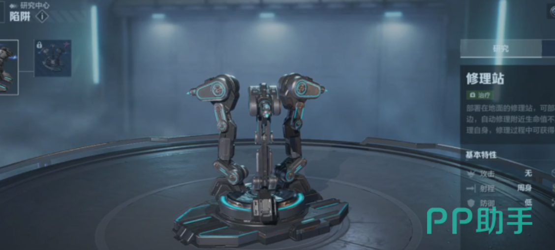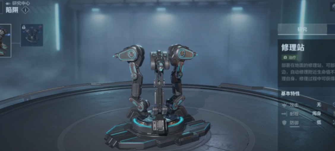 除陷阱系统外,修理站同样是生存体系的重要组成。玩家初始即拥有该设施,主要功能为恢复角色生命值。但其修复速率随角色等级提升而线性增长,因此在中后期高强度作战场景下,修理站的实际续航效能将显著增强,成为持久战中的关键保障节点。