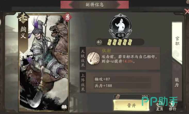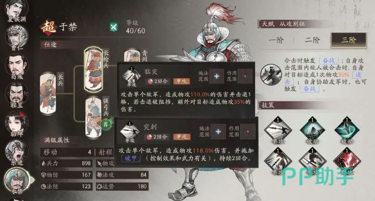 三国望神州于禁培养攻略中,玩家在使用该武将时应重点关注其合击机制下的团队增益能力。于禁的核心优势在于能够通过触发合击释放强大的协同效果,其输出表现会因是否激活合击而产生巨大差异。因此,在决定培养他之前,必须充分理解他在合击体系中的定位与作用。