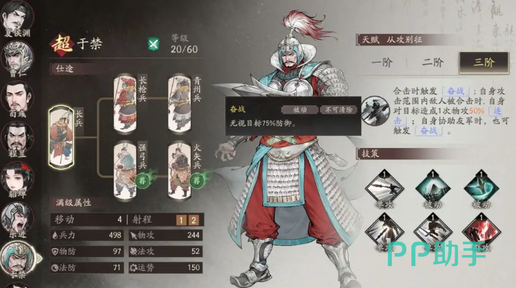 于禁的天赋技能在成功触发合击时,可使攻击无视目标75%的防御力,这一特性使其成为针对敌方主力输出单位的高效打击者。当该效果生效后,只要处于其攻击范围内的敌人被命中,便会额外触发一次连击,显著提升整体伤害效率。作为游戏中合击系统的关键角色之一,掌握其运作机制是发挥其实战价值的前提。