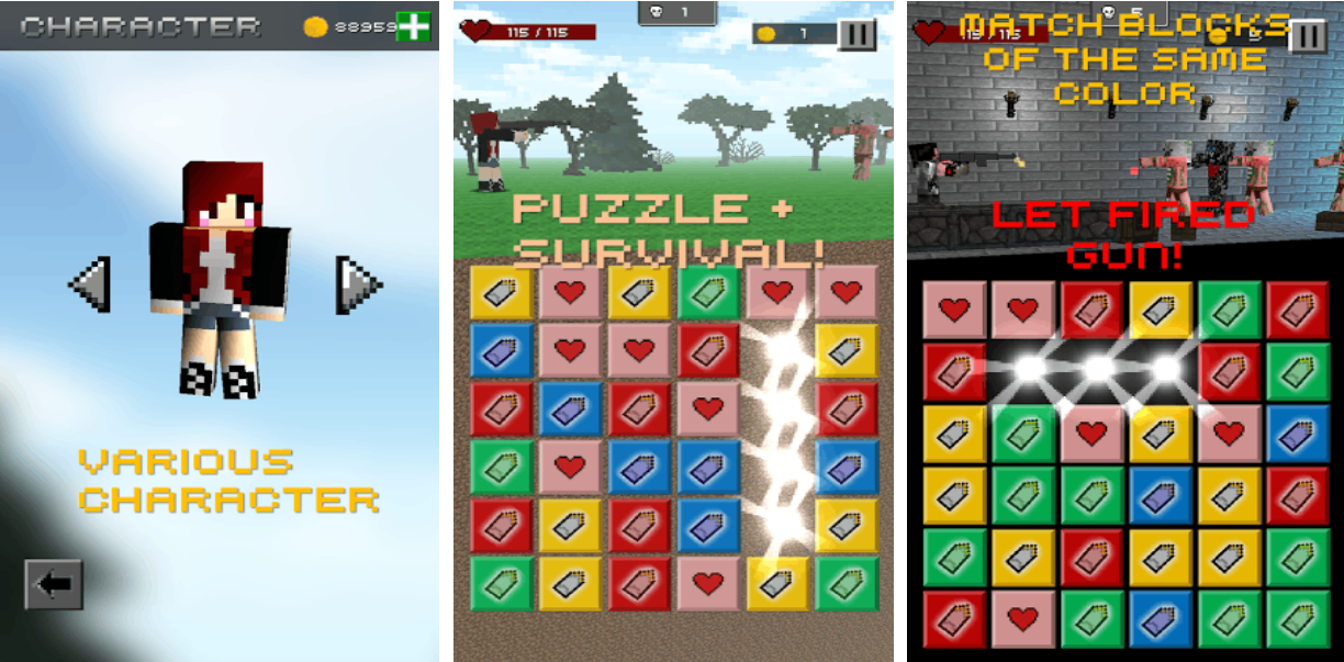 像素生存是唯一一款将消除和打僵尸元素融合的作品,像素风格的小人与充满创意的规则都是亮点,通过消除的方式可以发射子弹击退僵尸,精致像素的背景也能展现出末日之下的世界观,极为丰富的生存、消除关卡也增添了耐玩性,海量的建造道具也可组合成各种武器对抗尸潮,这款消除+生存类的像素作品十分好玩。