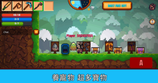 这是款拥有横版操作性质的像素冒险生存作品,可利用各种沙盒元素进行生存或者养成任务,养宠物、探索地图并打造家园等玩法都很有趣,超级可爱的像素角色呈现让气氛更显休闲,生存地图精致美观有许多像素生物穿梭其中,极为轻松治愈的生存环境塑造也显得与众不同,这款能在像素世界中求生探险的作品值得一玩。