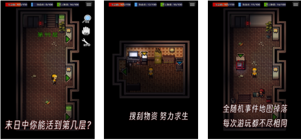 生存之志这款竖屏求生类游戏能够单机运行,地图设定在一栋百层建筑之中,每一层楼都充满了随机任务和僵尸,你需要收集道具进行组合完成任务努力存活下去,极为特殊的末日求生设定给人强烈新鲜感,自由进入房间搜刮物资生存的理念也很特殊,全地图掉落的各种有用资源等待着朋友们收集,你能在诡异的丧尸大楼中活到第几层呢?