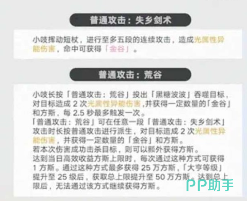 在任意一段“失乡剑术”过程中长按普攻,即可即时派生出“荒谷”技能——投掷黑糖波波吞噬目标,造成两段光属性伤害,并同步获取金谷与方斯。这一派生机制取消了传统技能前摇等待,实现无缝衔接,大幅提升资源获取效率与战斗流畅度,是中高阶操作的关键节点。
