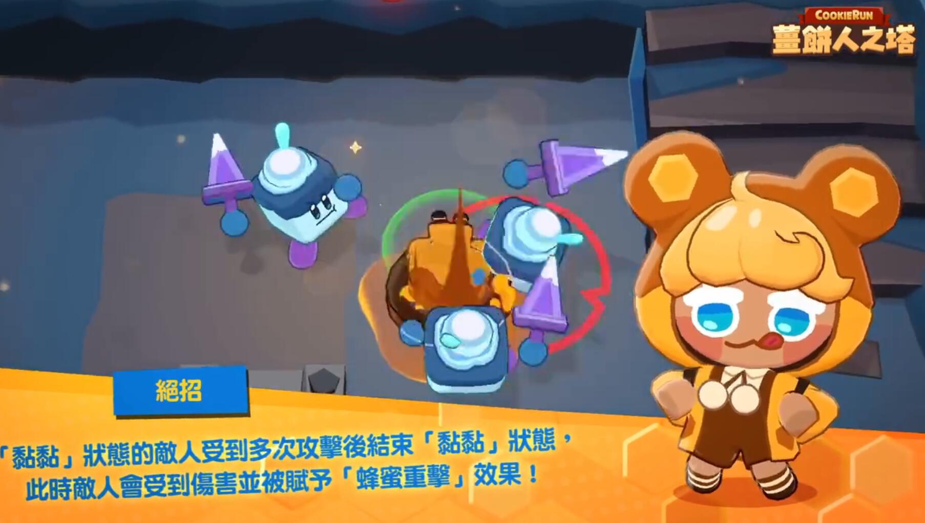 蜜熊饼干的核心输出逻辑围绕“黏黏标记”与“蜂蜜重击”的联动展开。其主动技能“蜂蜜冲击波”可释放三道波纹,对目标施加黏黏标记;而大招“蜂蜜风暴”不仅能引爆标记造成范围伤害,还能附加蜂蜜重击效果,带来约20%的伤害加成。每层攻击可叠加1层标记,叠满3层后触发额外伤害。若未叠满标记就释放大招,会导致大量伤害丢失,因此掌握标记叠加时机至关重要。