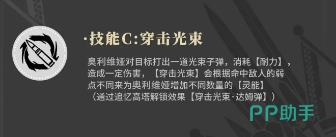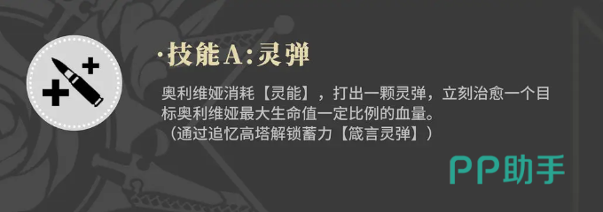 为了提升作战效率,建议为奥利维娅配置“悲鸣”装备。该装备可显著缩短换弹所需时间,并增强整体攻击速度,从而提高她在高强度战斗中的持续输出能力。此外,其第一个技能可触发“灵弹”效果,这是一种依赖灵能值驱动的强化攻击模式。消耗灵能所发射的灵弹不仅伤害高于普通子弹,还能在命中目标后按比例恢复自身生命值,恢复量基于当前生命百分比计算,因此更适合在血量较低时使用以最大化治疗收益。