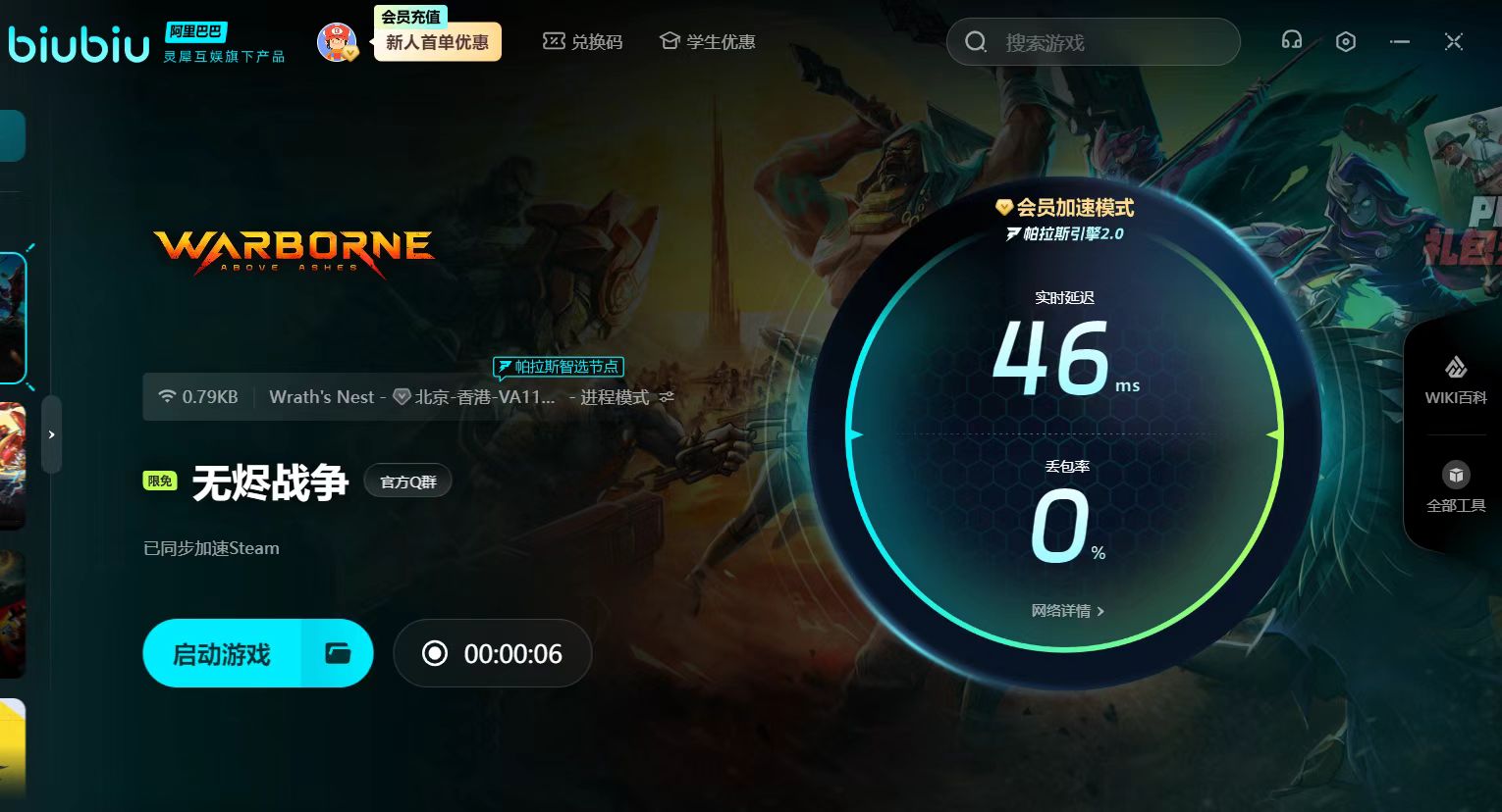 目前,biubiu加速器支持多款热门游戏加速,新用户可通过新手礼包领取24小时免费加速,输入兑换码【biubiu不掉线】还能额外获得3天加速时长,累计96小时的免费加速足以完成无烬战争的下载,甚至畅玩多个关卡。
