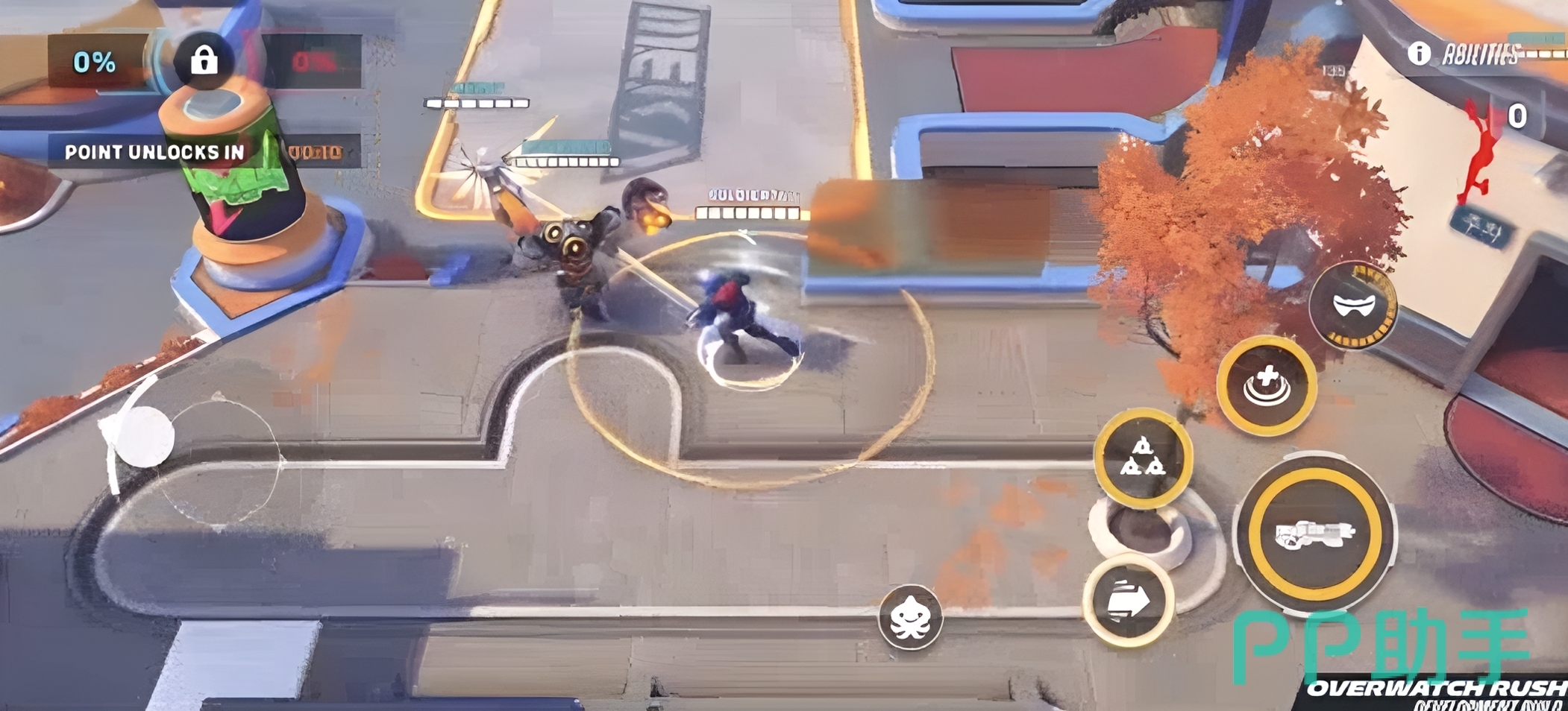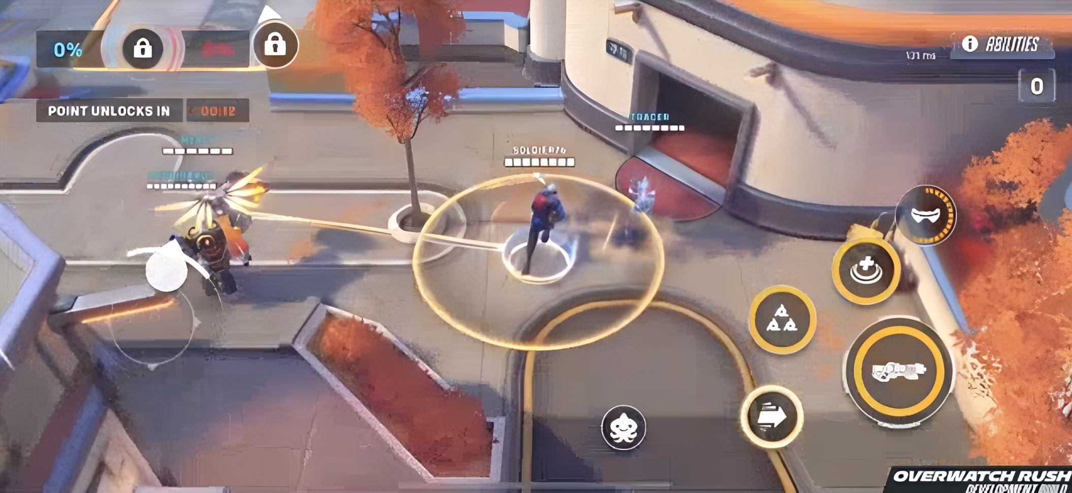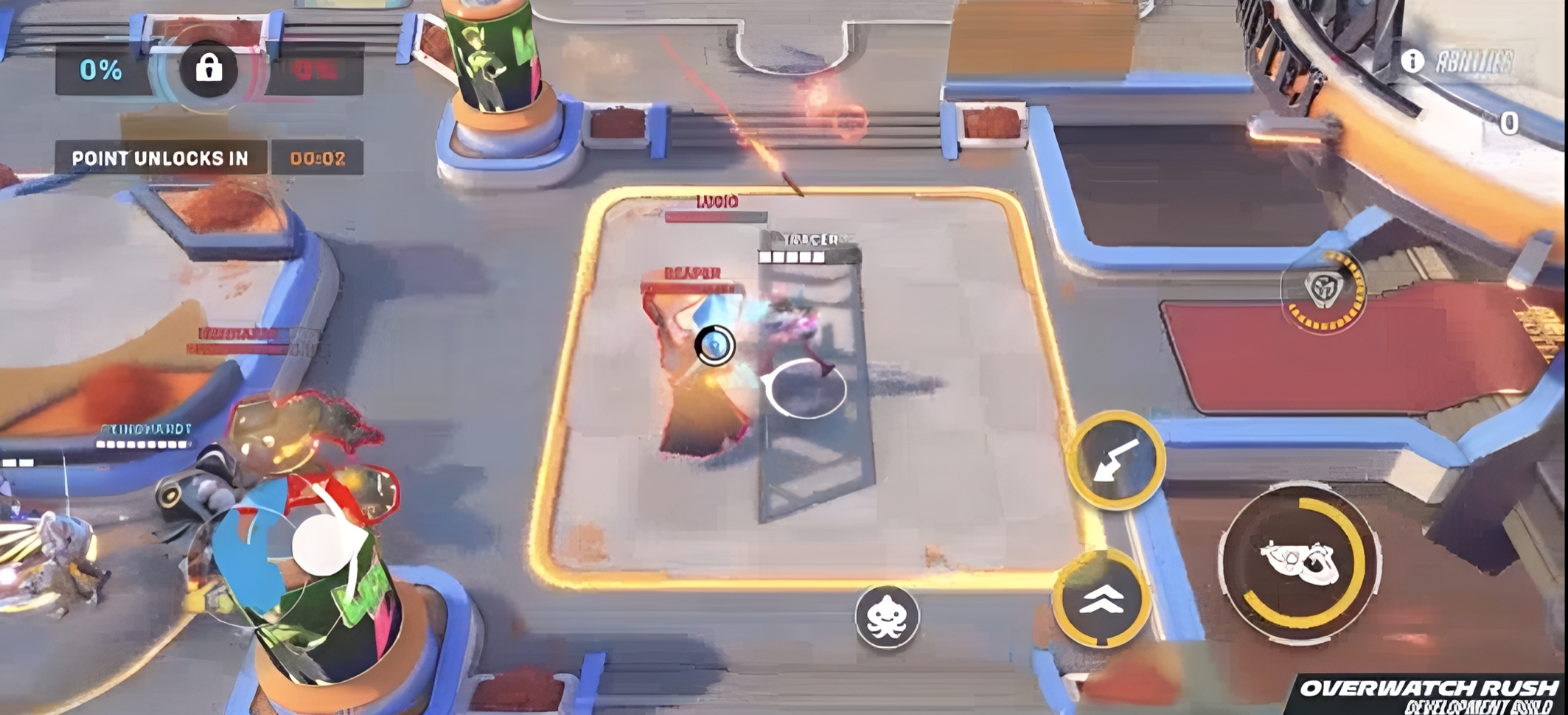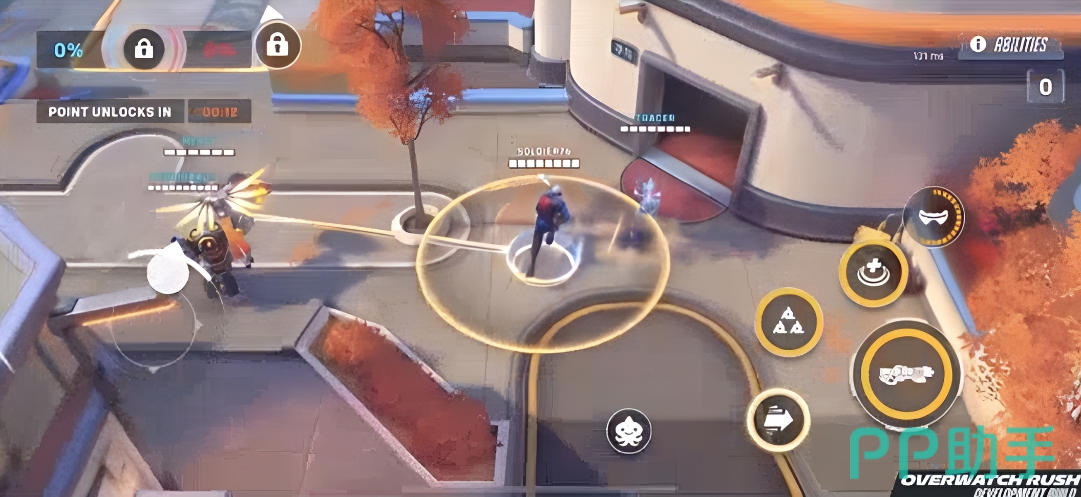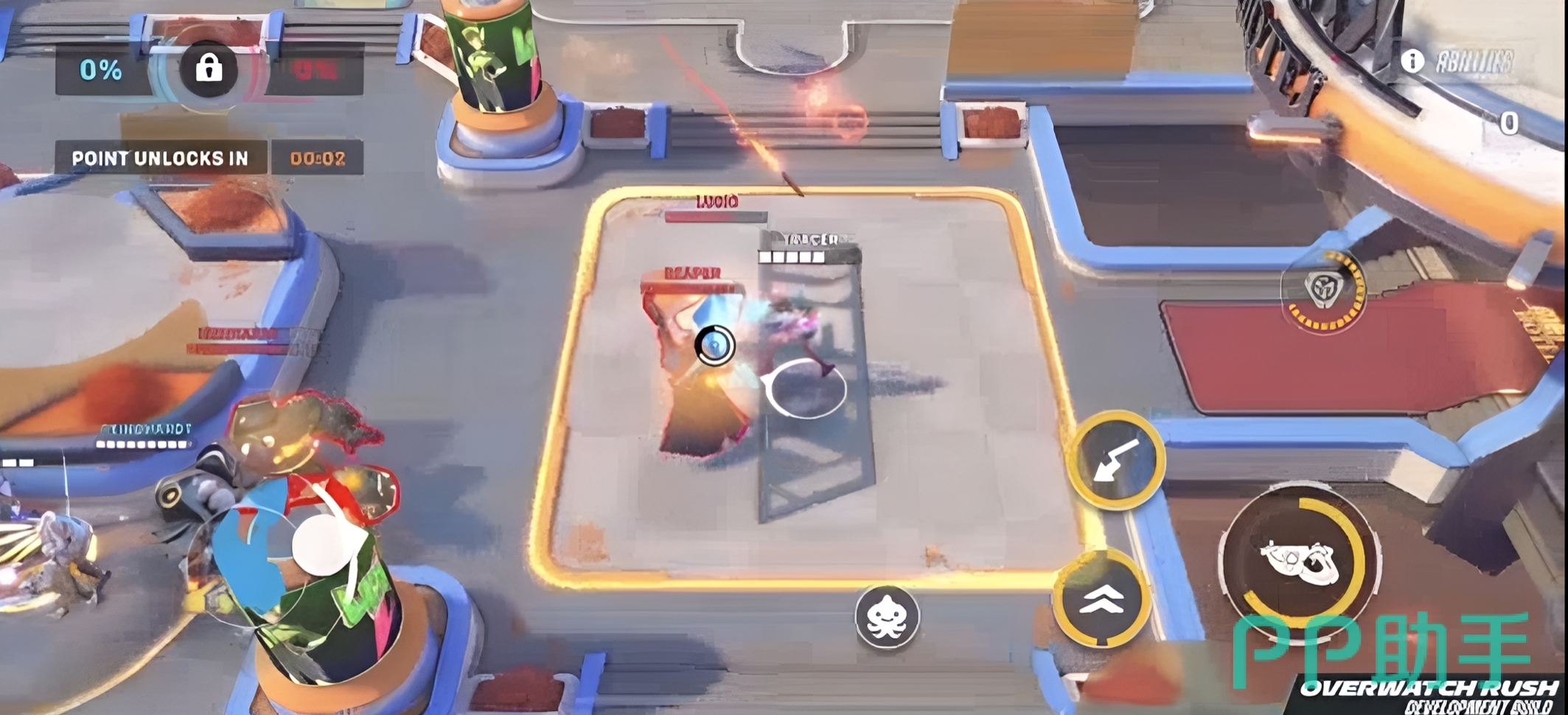 本作并非端游的简单移植,而是专为移动设备重构的俯视角战术射击作品。游戏采用双摇杆操控逻辑——左侧虚拟摇杆控制角色位移,右侧区域支持自由瞄准与技能释放,操作响应精准流畅。每位英雄均保留原作标志性技能机制,如死神的瞬移、天使的复活等,并针对触屏交互进行了适配优化。多人实时对战以5v5为核心模式,同时创新引入“代币争夺”玩法:双方队伍需在动态地图中抢夺并护送关键资源,胜负不仅取决于火力压制,更考验团队协同与战术调度能力。