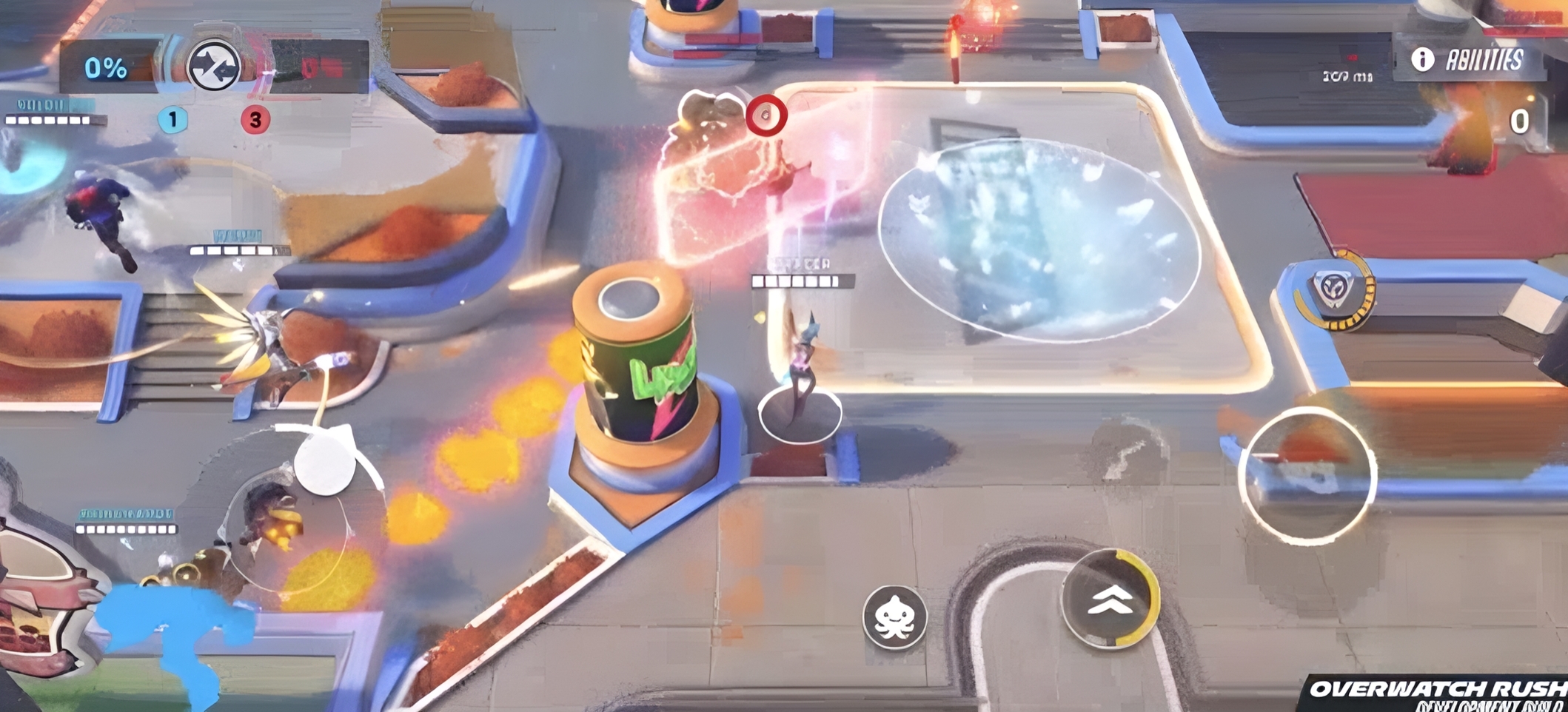 区别于传统FPS手游,《守望先锋冲锋》强调角色差异化定位与技能协同逻辑。前排坦克、后排输出、辅助支援三类职能清晰,配合机制深度融入每一场团战。例如,在代币争夺模式中,辅助英雄需精准把握护盾施放时机以掩护持币队友突进,而机动型输出则负责清点侧翼威胁——策略维度远超单纯枪法比拼。