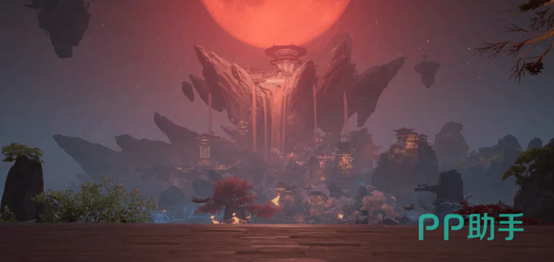 该结界常年处于日照隔绝状态,但双瞳阵法所化幻月恒悬天穹,持续释放月华能量,使整片区域昼夜如一、光影幽邃。这种非自然光源不仅塑造了独特的视觉氛围,更成为维系生态运转的核心能量来源。
