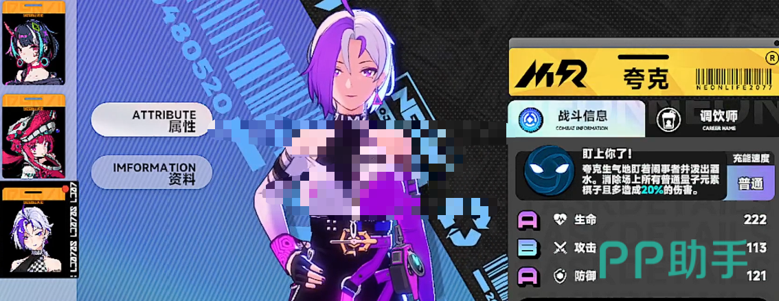 最后一位是虎彻,表面设定为普通市民,实则拥有全模式通用型成长加成。虽无专属主动技能,但在所有玩法场景中均可获得基础分数增益,属于依赖操作精度与熟练度释放上限的角色。适合进阶玩家通过微操实现高分突破,在“霓虹擂台”“街头涂鸦赛”等强调综合表现的模式中尤为亮眼。