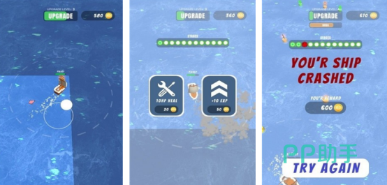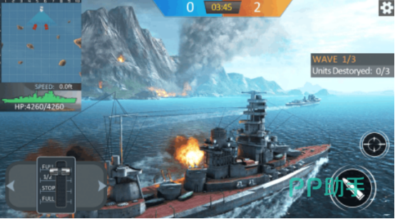 采用目前3d引擎的技术进行打造,为玩家呈现出了特别逼真的海洋场景,在刺激的海战中,您必须要发挥出自己超强的军事能力,在面对强大敌人的时候,想方设法将敌人彻底击败,以此获得更多的奖励,这里涵盖了三种类型的战舰,其中有巡洋舰以及驱逐舰等等。玩家可随意操控战舰与敌人,展开疯狂的对抗模式,点击屏幕的中央,就可以顺利完成射击的任务,还有左右侧的操纵杆,任由玩家操控。