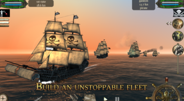 在本作中你有几乎指挥海盗舰队与其他的船舶进行战斗,汪洋的大海环境结合黑色旗帜代入感很强,真实驾驭海盗船探索海洋世界的感觉很自由,游戏提供的加勒比海生存环境极为残酷,三维精致建模呈现的海洋环境也较为真实,操作体系很复杂呈现出真实海战的残酷,这款3D版本的单机海战作品你也试试吧。