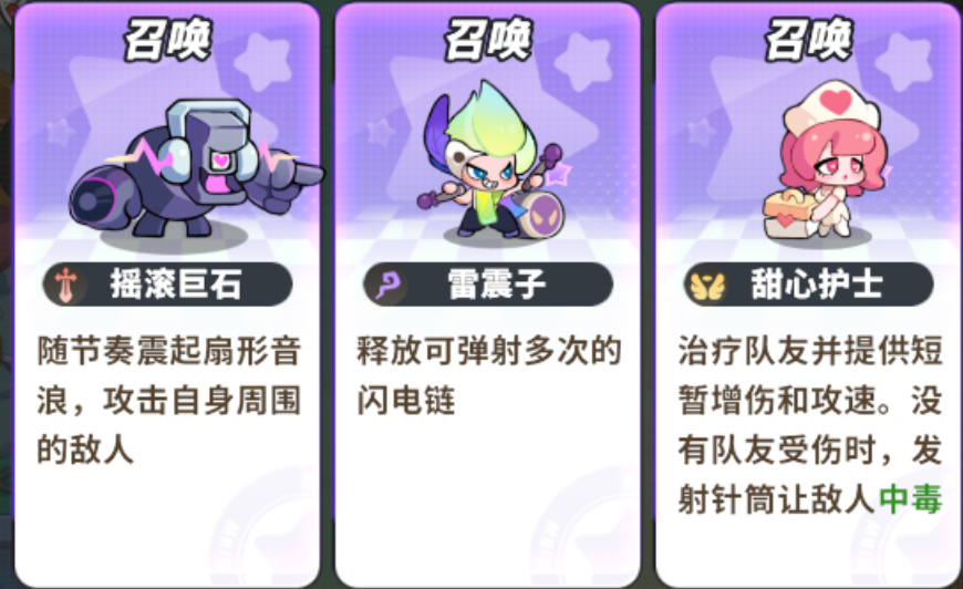 官方实测验证的两套开荒阵容可供参考:其一为“梦之队”,配置为摇滚巨石(战士)、炽焰巫师(法师)、寒冰射手(射手)、吟游诗人(辅助)、果冻少女(毒系)。其中摇滚巨石兼具高生命值与击飞控制,寒冰射手与炽焰巫师形成冰火元素联动,吟游诗人提供攻击加成与行动加速,果冻少女施加中毒与减速双重软控。整队输出循环流畅,续航能力扎实。其二为“冰火雷音护卫队”,将果冻少女替换为雷震子(控制)或甜心护士(辅助),强化群体控场或治疗深度,适配高压Boss战或高密度小怪关卡。