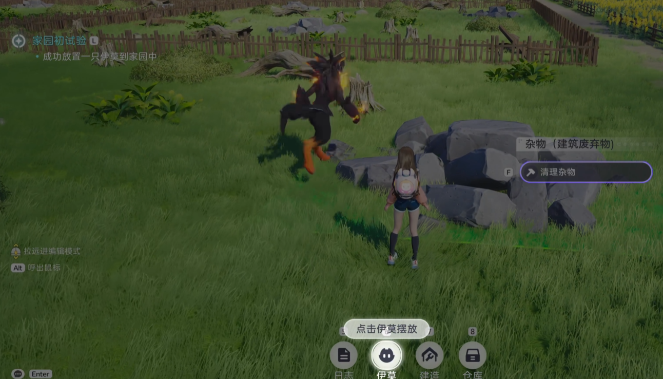 开启家园之旅的第一步是推进主线任务流程。当完成特定进度后,系统将自动触发“家园初试验”任务。此时需要清理周围区域的杂草和碎石,腾出足够的空间用于后续建设。清理过程支持随时暂停,方便玩家灵活安排游戏时间。更值得一提的是,召唤出你的伊莫伙伴,它们将协助你高效清除障碍物,大幅提升整理速度。