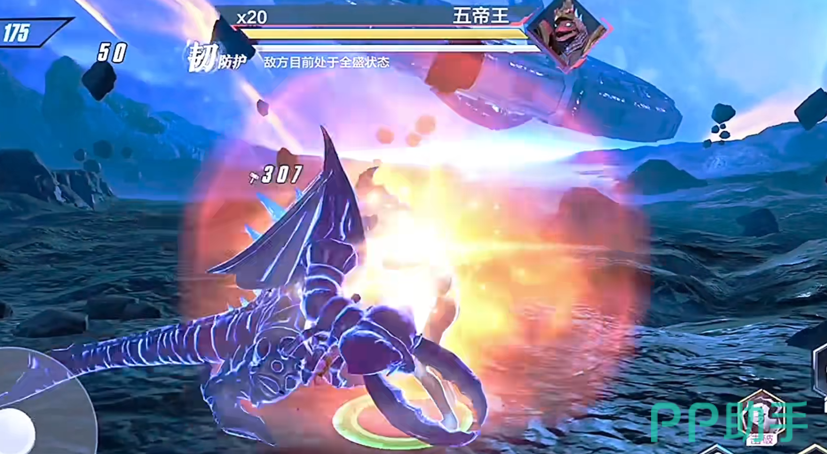 五帝王由哥尔赞头部、美尔巴右翼、超戈布躯干、加恩Q左臂、雷丘巴斯右钳五大部位构成,各部位独立存在生命值并具备专属技能。哥尔赞头部(弱点:光系)释放岩浆射线,对直线路径造成持续灼烧,每秒损失最大生命值3%;美尔巴右翼(弱点:风系)周期性升空发动俯冲,落地时产生范围冲击波。超戈布躯干(弱点:雷系)生成全域防护罩,需累计承受200次攻击方可破除;加恩Q左臂(弱点:神圣系)开启暗能漩涡,吸收所有飞行道具并转化为自身治疗;雷丘巴斯右钳(弱点:冰系)蓄力重砸制造扇形地震波(附带5秒减速50%)