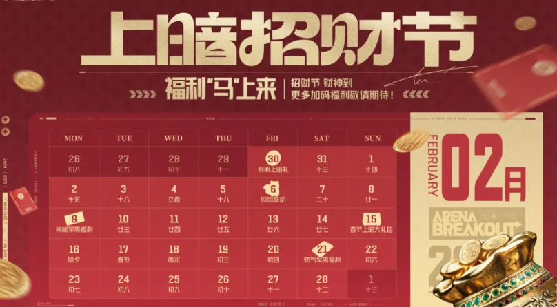 本次招财节是《暗区突围》2026年度首场大型节日运营活动,福利结构清晰、奖励梯度丰富、参与路径明确。建议玩家合理规划每日在线时间,优先完成基础任务与祈愿动作,确保赛季装扮券、代币及稀有藏品等核心资源全额获取。