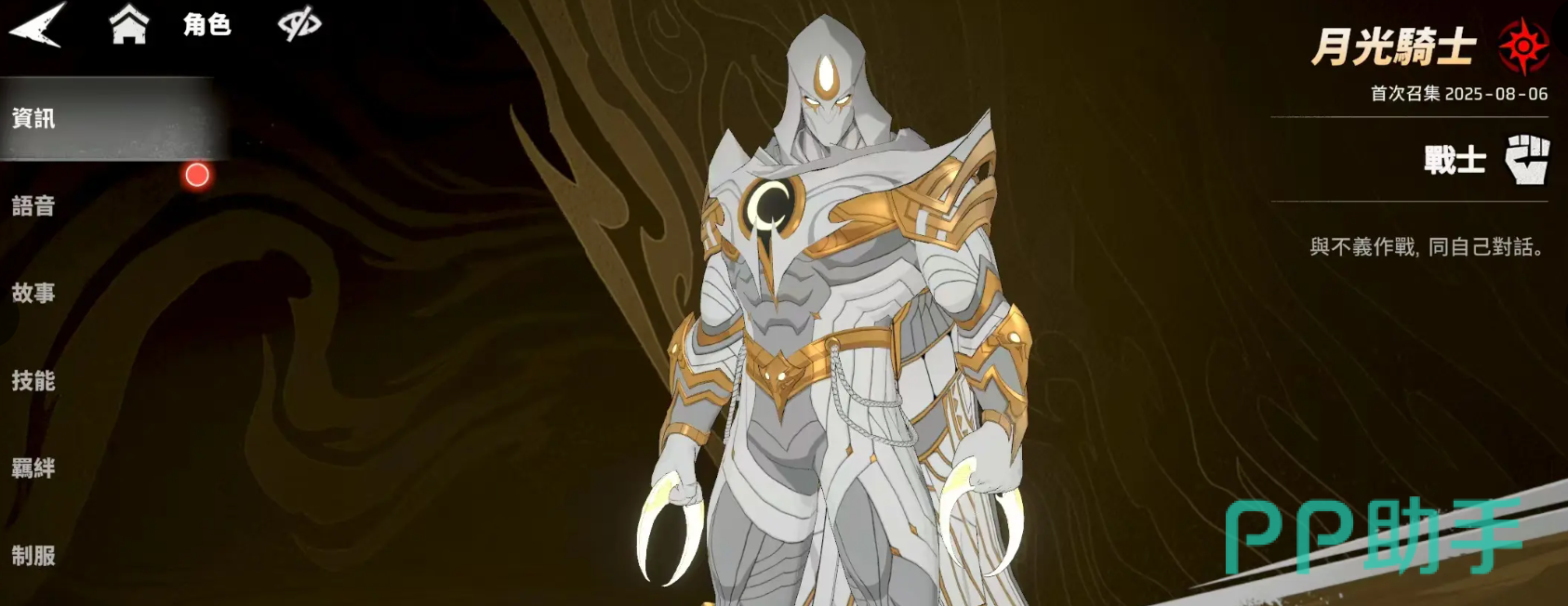 虽然职业设定为战士,但月光骑士拥有强大的团队支援能力,尤其适配多前排阵容,堪称战士职业中的“功能型奶辅”。他的“夜游人”技能可瞬移至血量最低的敌人位置并发动物理攻击,兼具机动与输出。“孔苏之佑”为自身及周围队友提供10秒增益状态,增强持续作战能力。