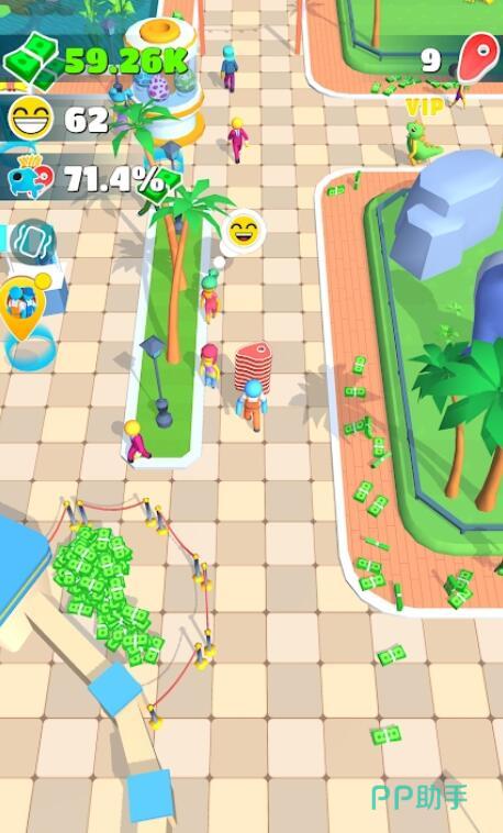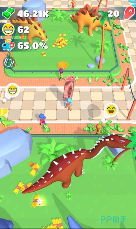 游戏里主要的经营玩法就是打造观光区域,建好设施后就能吸引游客来参观你的恐龙乐园。看着游客们在园区里走来走去,对着恐龙拍照留念,还挺有成就感的。游客会带来额外收入,而且随着园区设施升级,来的游客也会越来越多,给你的小岛增添不少热闹感觉。虽然这部分玩法相对简单,但正好符合游戏轻松休闲的定位,这毕竟是个放置游戏,太复杂反而没那味了。
