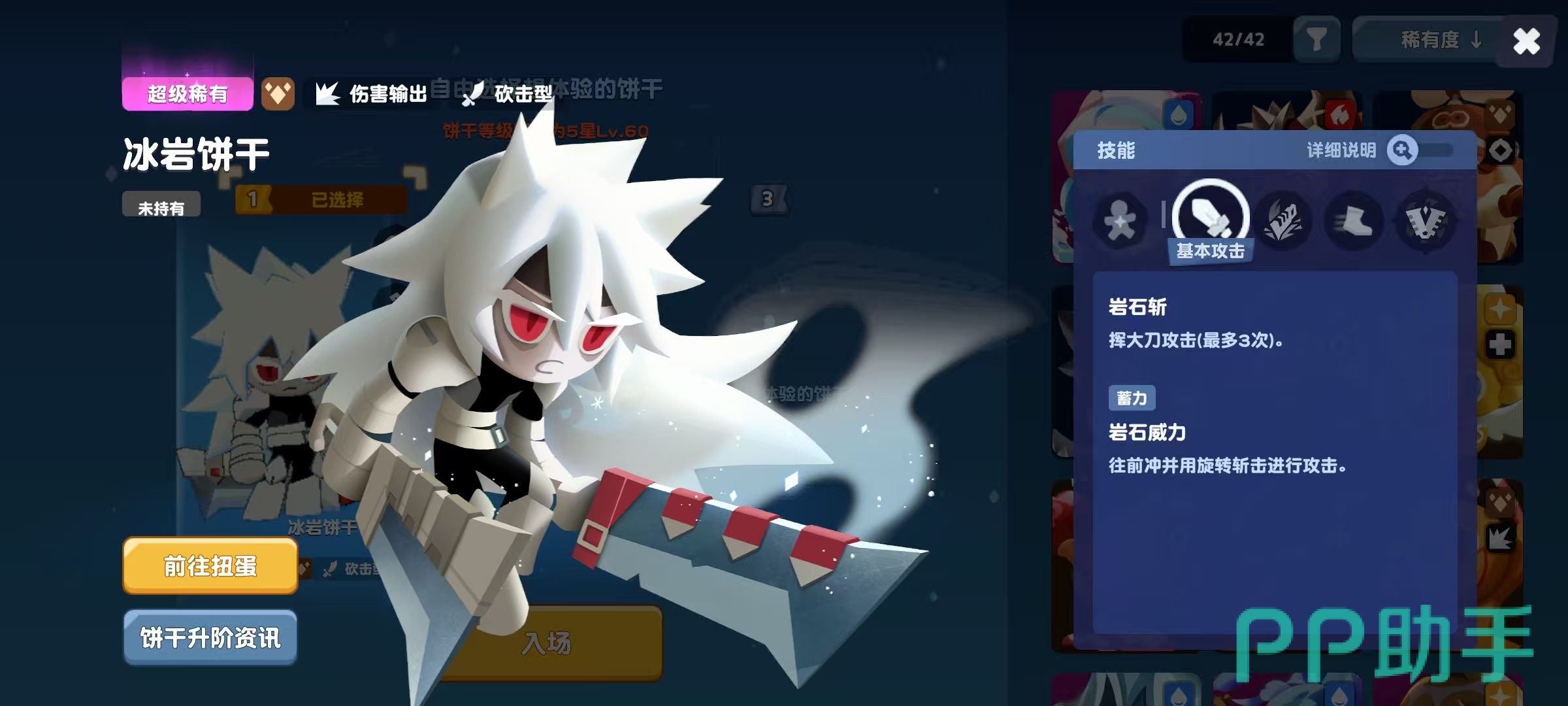 冰岩饼干是《饼干人联盟》中一位外形极具视觉冲击力的角色,其标志性的雪白发色让众多玩家印象深刻。作为游戏中稀有度极高的砍击型输出单位,冰岩饼干在实战中展现出强大的爆发能力和持续作战潜力。接下来将深入解析这位强力角色的技能机制与实战表现,帮助大家更好地理解饼干人联盟冰岩饼干怎么样。