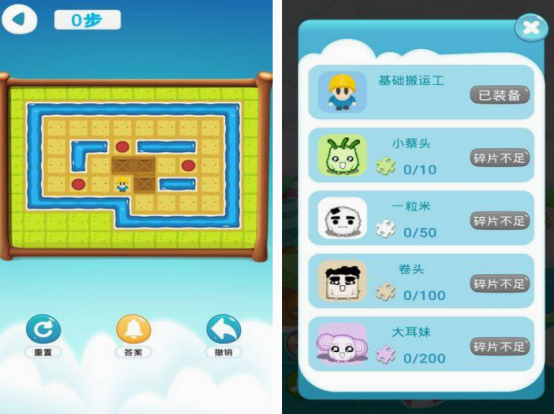 由于推箱子的游戏只能将箱子通过正确推动的方式,到规定的位置上才能顺利通关,不能够拉箱子,而且一次只能够推动一个,所以增加了游戏的难度。在这款儿童也可以尝试的推箱子游戏中,考验玩家的智力解密能力。进入了狭小的空间以后,由于每个关卡中都会有不一样的封闭空间和箱子数量,所以你必须要根据每个关卡的设置开动脑筋。