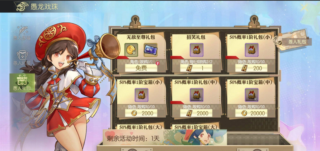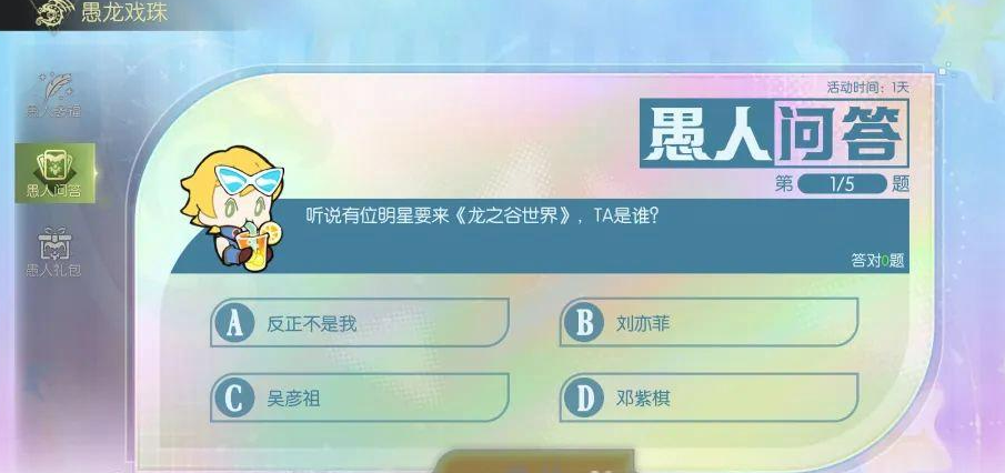 如果你是那种喜欢每天登录的小伙伴,那可不能错过每日的登录奖励哦!活动期间,每日登录一次都会让你免费获得50%概率的1阶礼包,可以说是让你轻松领福利。除此之外,别忘了去参与“愚人问答”,完成五道充满脑筋急转弯味道的趣味问题,不管你答对还是答错,都能拿到随机奖励。这里的每一道题目,答案总是出乎意料,甚至有点让人抓狂。挑战自己的智慧,看看能不能顺利通关。