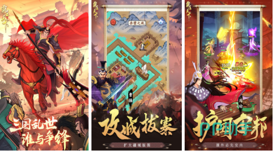 利用独特的水墨画风格进行展现,还以卡牌的形式为主,这款游戏所有的故事都是围绕着三国历史进行讲述,这里有很多优秀的三国名将,都是以卡牌的形式进行展现,玩家要发挥出自己的策略头脑合理搭配,还要正确做出规划,放置武将拥有强大的阵容,从而实现攻城略地的重任。
