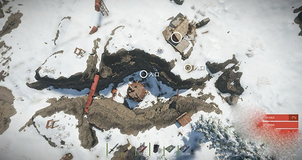 生存是本作的核心主题。游戏开始时,玩家一无所有,仅以赤手空拳面对荒野。角色具备多项生存指标,包括生命值、口渴度、饥饿值和体力等。任何外界伤害都会造成生命值下降,一旦归零则角色死亡,需重新开始。为维持状态,玩家需主动寻找水源补充水分,采集食物维持饱腹,并通过休息恢复体力。在有火源或配备家具的安全区域,角色的生命值恢复效率会显著提升。