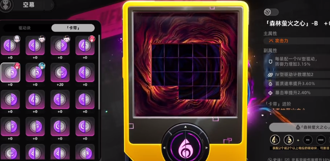 在属性系统中还会有随机系统,主要分成两个板块,一个是卡带,一个是驱动。每一个角色都可以佩戴驱动块,还有卡带,而且都是随机词条。和刷圣遗物是完全不一样的附属性词条,一般在强化到对应的等级时会解锁,不需要担心词条会歪掉。