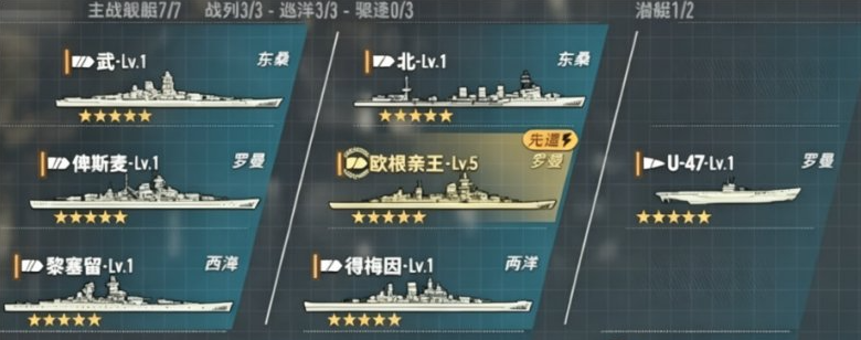 【满编毕业队】推荐阵容:武、北、俾斯麦、欧根亲王、U-47、黎塞留、得梅因、信。该配置以罗曼阵营为辅助支撑,东桑阵营为核心驱动,需上阵3艘东桑系战舰以激活专属增益——主炮伤害提升25%,同时潜艇鱼雷火力额外获得6%加成。全队平均星级达到满编标准后,火力覆盖密度与单点爆发均处于当前版本第一梯队。其中俾斯麦承担主力输出职责,武与黎塞留强化前排压制,欧根亲王与得梅因提供战术控制链,U-47和信分别补足水下突袭与空中打击维度,形成多维协同的立体作战体系。