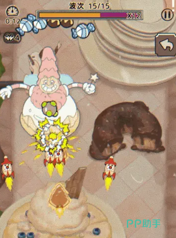 布丁教母:技能主要是围绕糖果攻击也会分成两个不同的阶段,第1个阶段是朝着空中扔糖果,而这些糖果就会随机的落下来。第2个阶段的难度会升级,抛洒的糖果数量比较多,速度更快一些。此时就需要集中注意力,优先躲避密集度比较高的粉色弹幕,避免因为慌乱而被砸中。