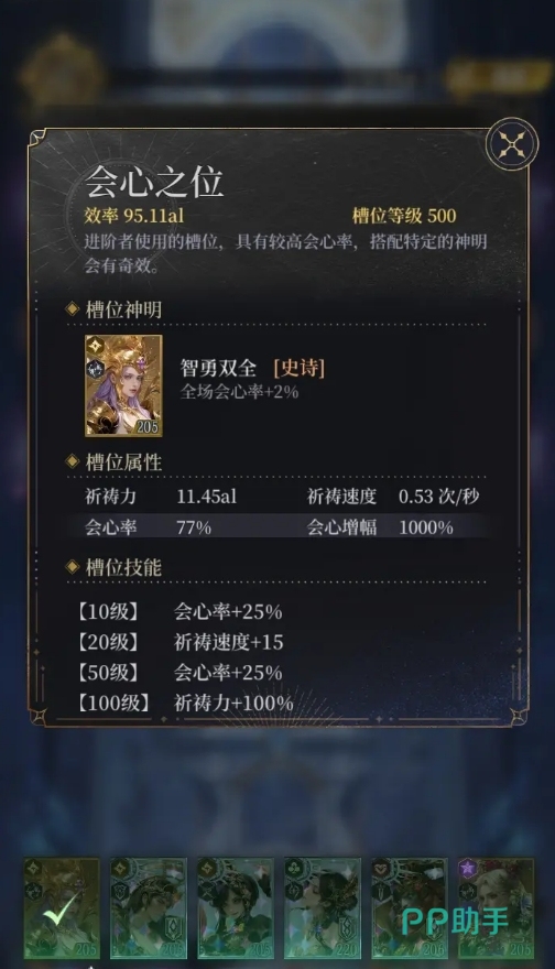 推图过程中,建议推进至当前战力可稳定通关的最高关卡后暂停,确保挂机收益最大化,无需强行突破。待角色养成提升后再继续推进即可,爬塔等玩法同理。值得注意的是,神龛系统是获取圣器的主要途径,也是提升整体战力的关键环节。零氪玩家应充分利用每一次祈祷机会,尽量用完每日次数,并合理放置对应神明卡以提高高品质圣器的产出概率,从而加快圣器升级进度。
