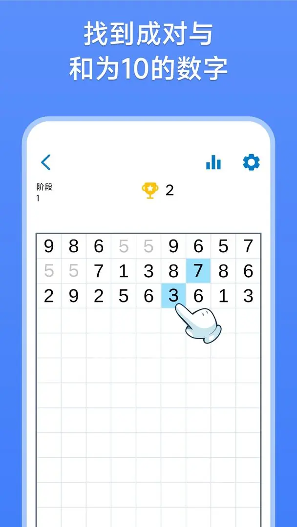 假如你想在休闲的游戏时光中得到一些学习的效果,这款《数字消除术》就会对你很有帮助。游戏的玩法总体上是较为困难的,它结合了消除游戏和加减法的玩法。在游戏当中,每当遇到两个相同的数字或者相加等于10的数字,玩家就可以对其进行消除。在此基础之上,游戏还有着空间限制的规则。并且,玩家的格子数量还是有限制的,挑战起来难度十足。