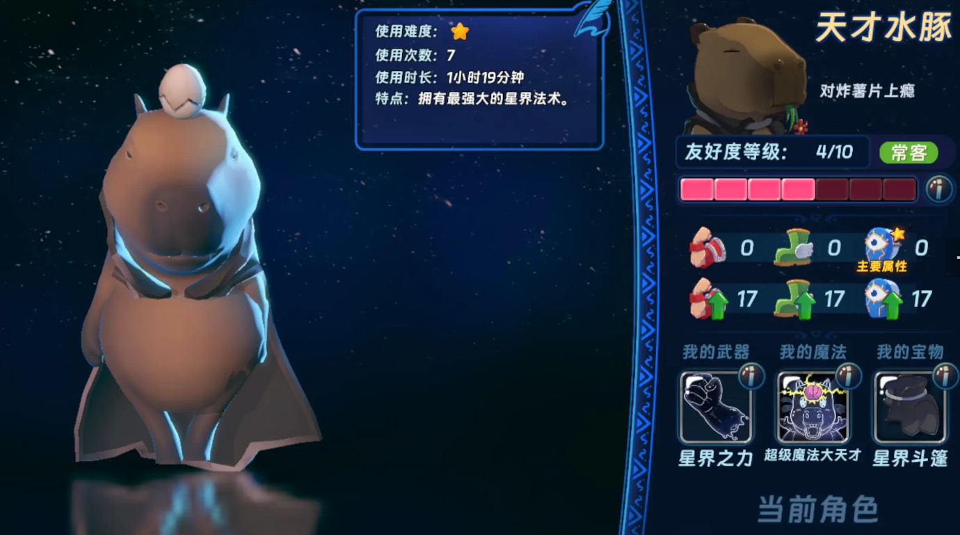 第二位推荐角色为天才水豚。该角色以印记叠加为核心驱动机制——每次技能命中可累积印记层数,满层后大幅提升普攻倍率与吸血效率。其应急技能不仅提供短时减伤与位移,还能对目标施加减速、易伤等负面状态,有效延长敌方攻击窗口冷却。在能量管理方面,天才水豚拥有较快的技能响应速度与较低的能量消耗比,适合采用“高频技能+普攻补刀”的循环打法,尤其适配需要持续压制的Boss战场景。