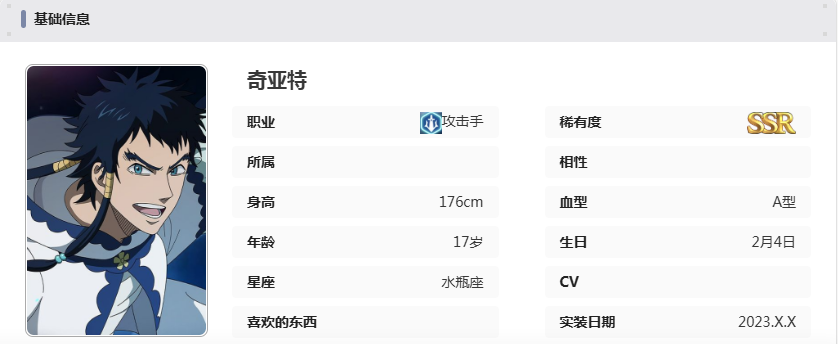 在众多游戏角色中,如果你正在寻找一位兼具高输出与独特魅力的攻击型选手,那么这位年仅17岁的角色绝对值得纳入你的阵容考量。黑色五叶草魔法帝之道基亚特,身高1米76,星座为水瓶座,不仅外形出众,战斗表现更是令人瞩目。接下来就为你全面解析这位潜力十足的角色。