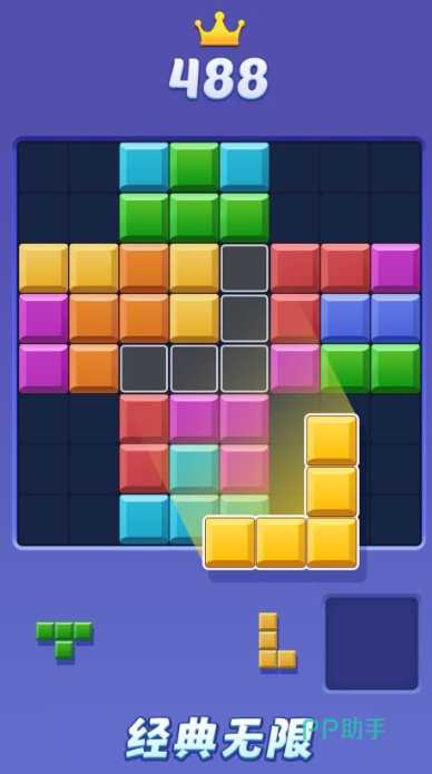 一款充满乐趣的方块消除休闲游戏,它秉承了俄罗斯方块的经典玩法,让人仿佛回到了无忧无虑的童年。每一次放置方块时,都需要细心调整其形状,精准点击让其落下,从而达成关卡要求或是刷新个人最佳成绩。玩家在游戏中可以尽情变换方块的形状,探索无限可能。系统内设有最高分数记录功能,玩家可以随时挑战自我,刷新最高分,享受不断超越的乐趣。