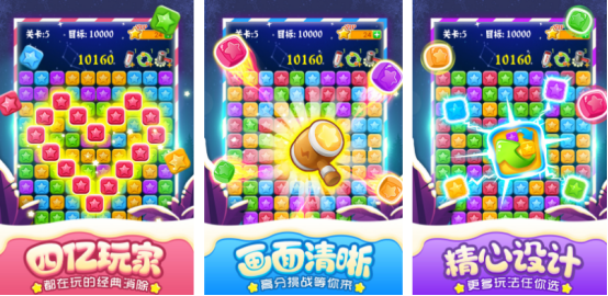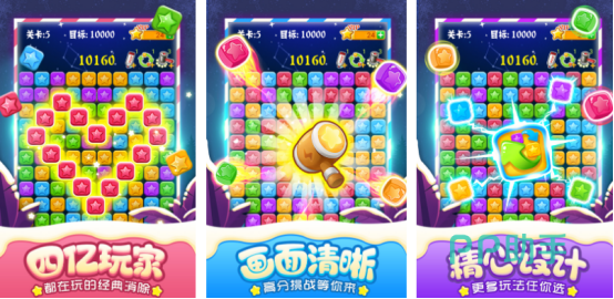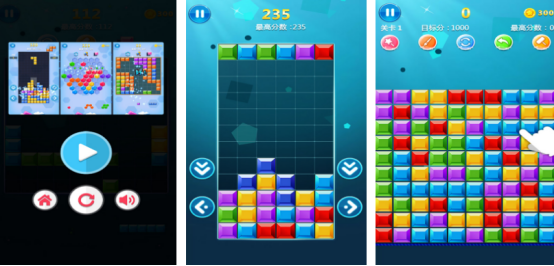 您将会沉浸在方块的世界中,在色彩丰富的方块里,玩家可通过滑动屏幕的方式,将不同形状的方块放在合理的位置上,就能以此消除获得相应的分数,每个关卡中所拥有的分数要求以及时间限制是完全不同的。玩家要根据每个关卡中的要求完成挑战,除此之外还有爱消消乐以及爱对对碰等经典的玩法。