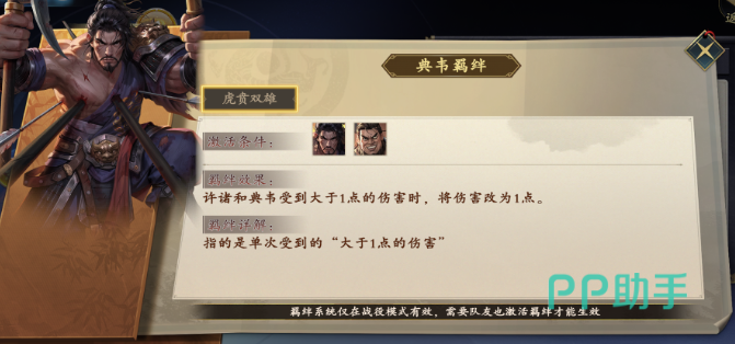 在生存向羁绊中,“典韦+许褚”组合尤为突出:当任一成员受到单次伤害大于1点时,实际承受伤害强制降至1点。面对赵高等高爆发BOSS时,该效果可大幅降低暴毙风险,显著增强容错空间。“桃园结义”则围绕张飞展开,不仅提升羁绊武将自身体力上限,更关键的是可恢复全体成员当前体力——包括处于重伤状态的单位,其回复过程同样可触发相关效果。配合刘备持续为张飞、关羽提供治疗,整支队伍的续航能力将获得质的飞跃。