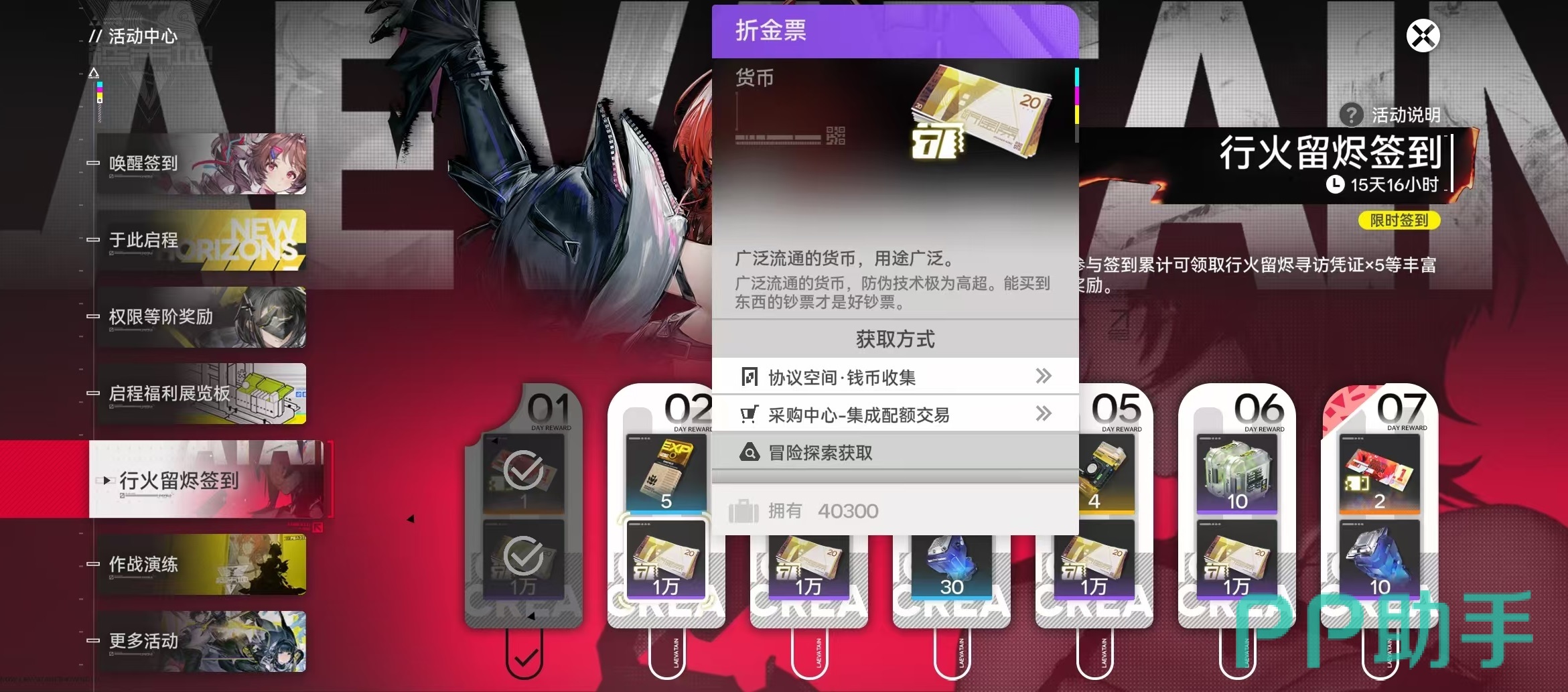 折金票是游戏中两大基础货币之一,具备高安全性防伪机制,广泛应用于角色养成与基建建设环节。常规获取方式共三类:一是在协议空间中收集对应钱币;二通过采购中心使用集成配额兑换;三参与限定冒险探索活动获取。其中,采购中心内设有明确折金票兑换入口,但需消耗集成配额——该资源代表物资协同调度权限,属稀缺型凭证。获取集成配额的主要途径包括:六星干员达成满潜能后,可将其信物转化为10点终点配额;此外,每日任务、主线剧情推进及地图资源采集亦能稳定产出配额。开服同期还上线多项限时活动,如“行火留烬”签到活动,连续签到第1、2、3、5、6日均可领取10000折金票;“作战演练”等PVE玩法同样设有折金票阶段奖励。