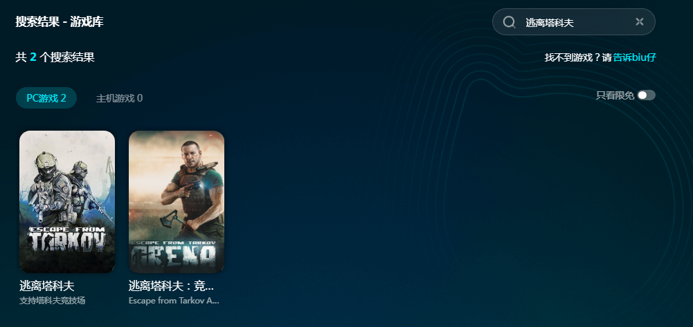 除了逃离塔科夫之外,biubiu还能加速上万款游戏,这些资源在软件里根据游戏名就能搜索到。为了回馈广大用户,biubiu准备了一个限免游戏池,里面的资源都是免费加速的,不用充值会员就能加速游戏畅玩,想想就觉得很痛快呀。