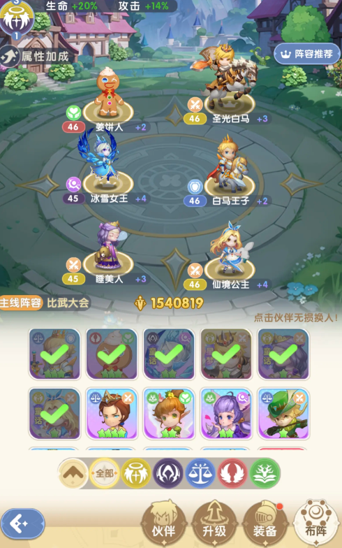 社交系统也是游戏的一大亮点,玩家可与其他用户互加好友,通过日常互动提升亲密度。累积的好感值不仅能用于兑换商城物品,达到一定等级后还能直接换取高星童话角色,助力阵容升级。