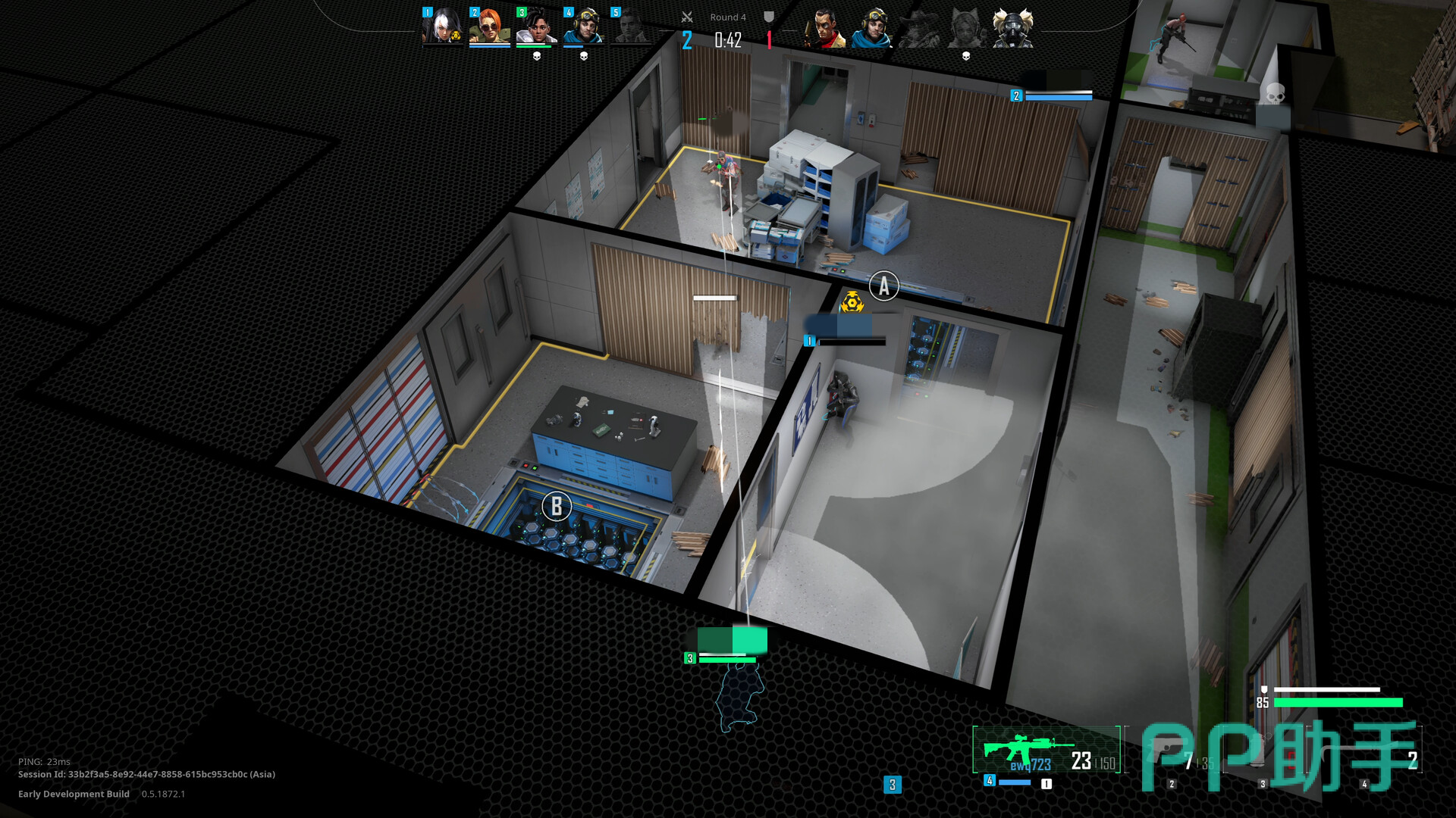 首先明确基础规则:爆破模式采用标准5V5回合制,单局共五局三胜,每回合限时2分20秒,攻防双方每两局轮换身份。进攻方目标为突破密室并成功安装解密装置;装置激活后需守护至芯片被成功盗取。防守方则须通过封门、布设路障与陷阱等方式阻断进攻路径,或在装置安装后及时拆除。团队死斗为非段位练习模式,支持无限复活,以累计击杀数判定胜负,是新手熟悉角色技能、校准瞄准手感的理想训练场。