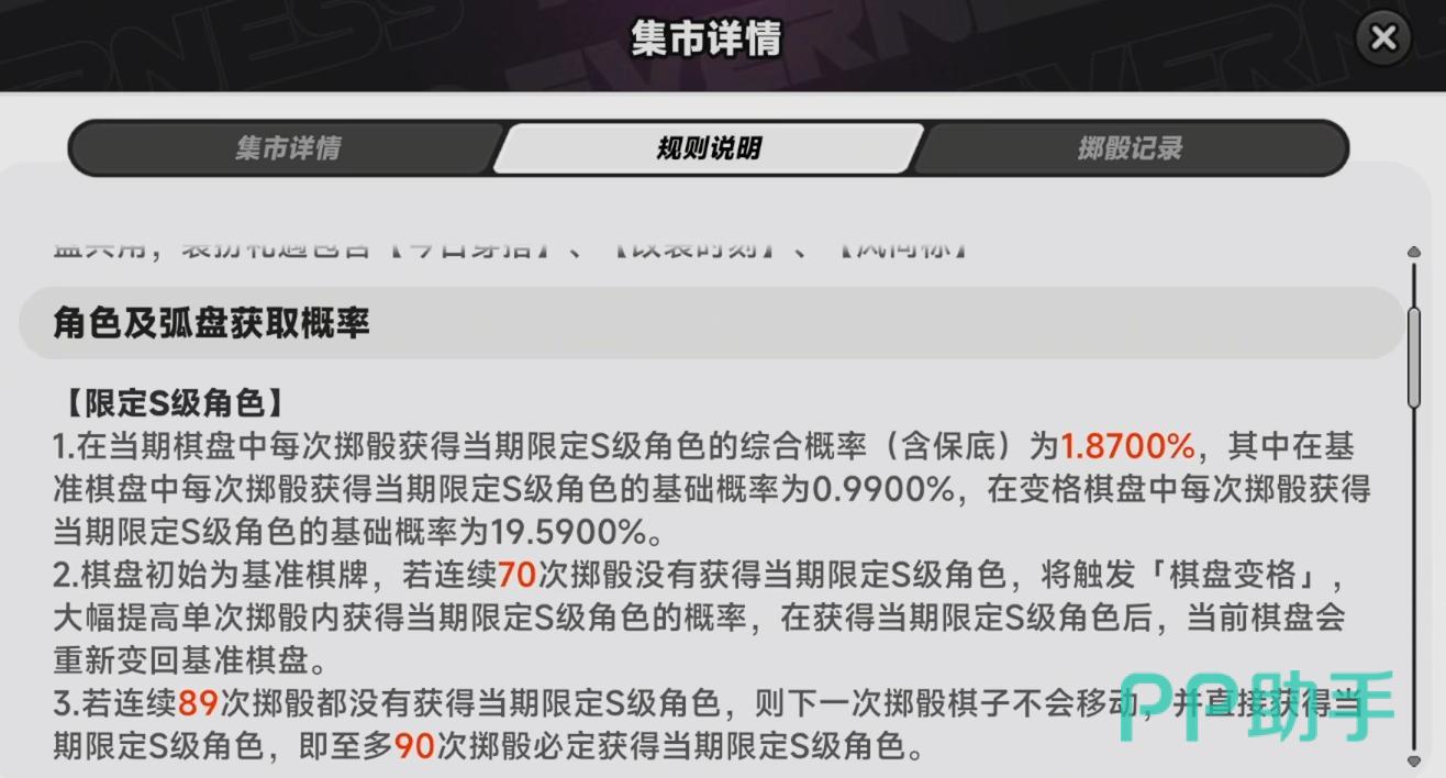 《异环》角色限定卡池采用“不歪保底”设计——即所有S级出货均100%锁定当期限定UP角色,彻底规避传统卡池中“歪到常驻”的常见争议。综合出货率为1.87%,其中前70抽基础单抽出货概率为0.99%;自第71抽起触发软保底,单抽出货率跃升至19.5%;且明确设置90抽硬保底,确保玩家在该抽数内必得当期UP角色。值得注意的是,不同限定卡池间保底次数互通继承,大幅降低跨卡池重复投入成本,属行业领先实践。