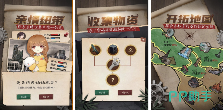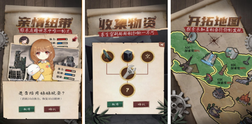 未知的灾难袭来,世界突然变成了一片末日的状态,玩家和妹妹借助囤积的资源生存了66天,面对丝毫没有好转的情况以及已经消耗殆尽的资源,玩家决定离开庇护所,前往野外去收集物资,玩家又在场景中不断去收集食物,水源和药品,随着探索将会进入到更多不同的地图场景中,需要和妹妹两个人互相鼓励,这样才有机会携手走出这片困境。
