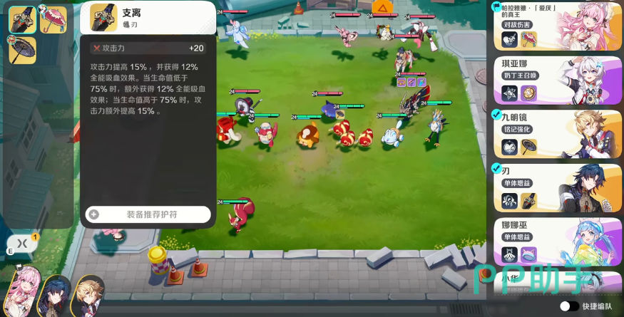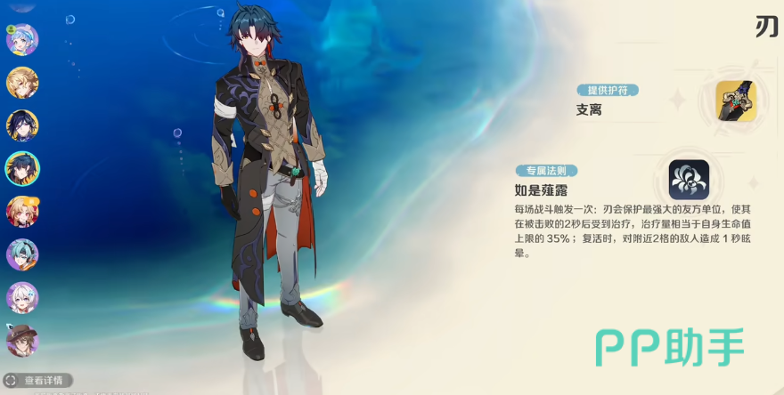 刃的另一项核心能力为被动触发机制,能够在战斗中自动保护当前输出最高的前排单位。该技能会为其施加护盾并恢复35%的生命值,持续时间为2秒。虽然恢复比例不算顶尖,但对于前排战士来说已具备良好的支援意义。