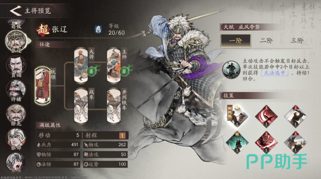 张辽作为高阶武将之一,即便在游戏初期也能快速成型,具备出色的成长性。其技能机制允许在受到攻击时触发反击,并对目标造成高达140%的伤害输出,且每次普攻可同时打击四名敌方单位,非常适合用于清场与群控场景。而张飞则担任骑兵系主将角色,激活神天赋后可在战场上生成两片格挡区域,有效规避敌方远程或突进攻击,同时持续提升自身的反击输出效率。