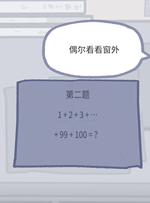 在第三关中,小伙伴们需要完成四道题的解答,这四道题的答案分别是1,5050,Si,9.8,在解答完这些问题后抬头向上看向窗户这一关就完成了,然后是第四关,在母亲让你能教她玩手机时首先告诉她按下手机的音量键,然后在与母亲的二次对话中将手机倾斜着与她进行交谈,并且亲自告诉她改怎么玩。
