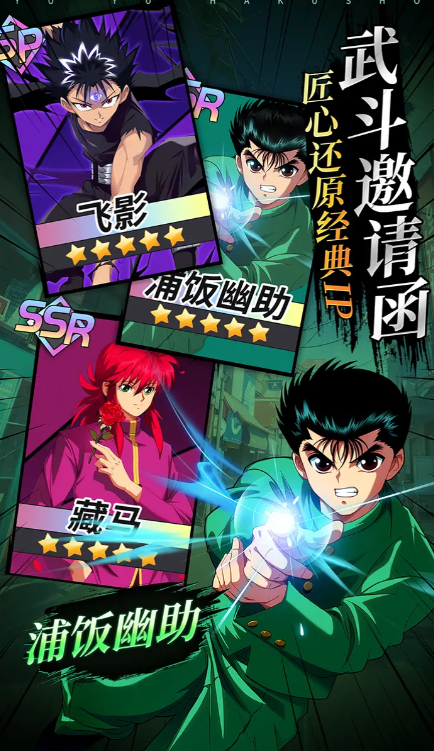 《幽游白书宿命觉醒》是一款采用了原版动漫幽游白书为主要剧情桥段的回合制策略战斗游戏,游戏内的各类强力角色,都来源于动漫的原著作品内,其中就包含有强悍的飞影、拥有双性别转化的藏马,还有最终boss户愚吕弟,这些角色都是玩家耳熟能详的经典动漫角色,不止如此,游戏内还为各个角色制作了专属的技能以及装备,例如飞影的专属装备就是他在原版漫画当中的三眼。