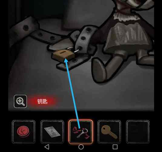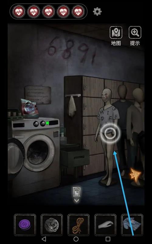 之后把右面的盒子打开,可以获得一个量杯,之后把墙面上的代码倒立过来,可以利用洗衣机的密码1689,将它打开,把水从洗衣机中排出来,获得假手和衣服,把衣服放在洗衣机中洗涤,旧的衣服可以交换给木偶,获得 DEI的密码,之后就可以从左边来到楼梯,将绳子连在一起,按下楼梯,往上走。