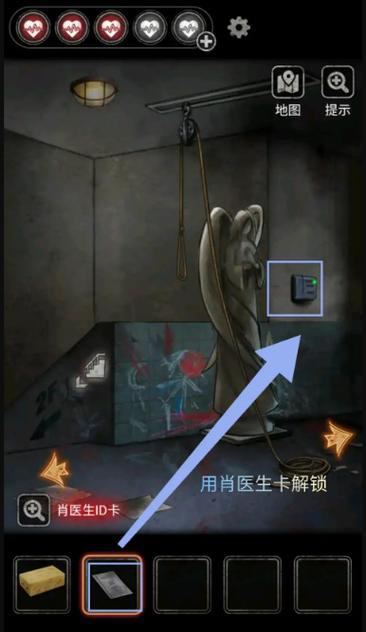 后面第四章节中,利用抽屉中的iD卡,将诊疗室的门打开,来到精神科,检查室内,把左侧藏在布偶中的手册和手套拿出来,将他们全部剪碎,之后把手册的代码反转过来,拿到按摩椅的代码517658,之后把人偶和头巾,放在左侧,小旗子安置在右边,就可以获得关键道具纸条,后面来到隔壁,用拳套打沙包,可以获得小人头。