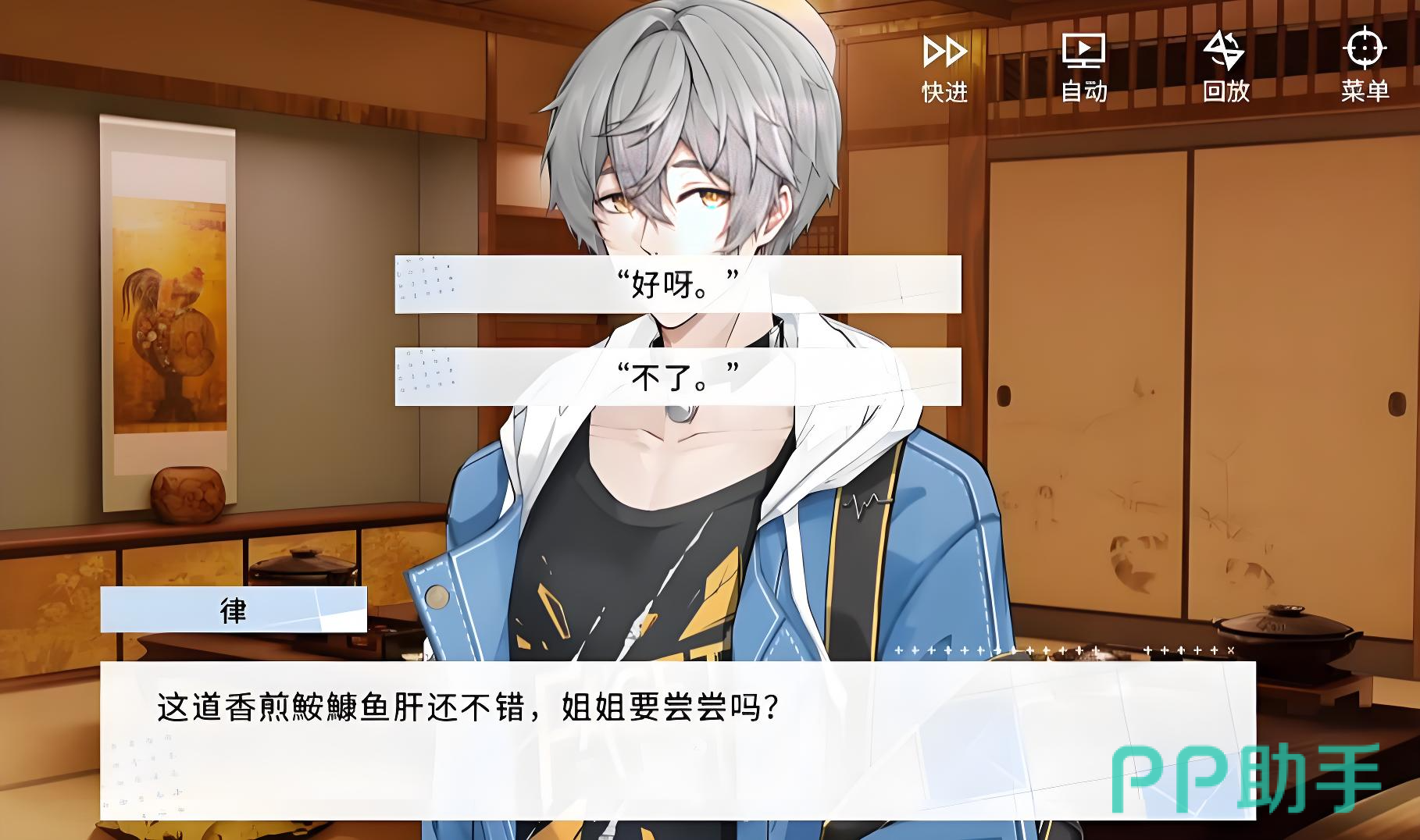 与景的互动结束后,律会邀请玩家品尝香煎安康鱼肝,此处请选择拒绝。到达旅店标识处时,主动询问信的意见,这将成为你们之间进一步交流的契机。当信伸手示意一同前往查看情况时,选择回应他的动作,共同行动。在接下来的情感反应中,面对信无意识的靠近,选择“感到慌乱”更能体现真实情绪;当被问及对信的看法时,回答“挺不错的一个人”有助于维持好感度。解谜环节出现“问信”的选项时,毫不犹豫地选择该选项即可。